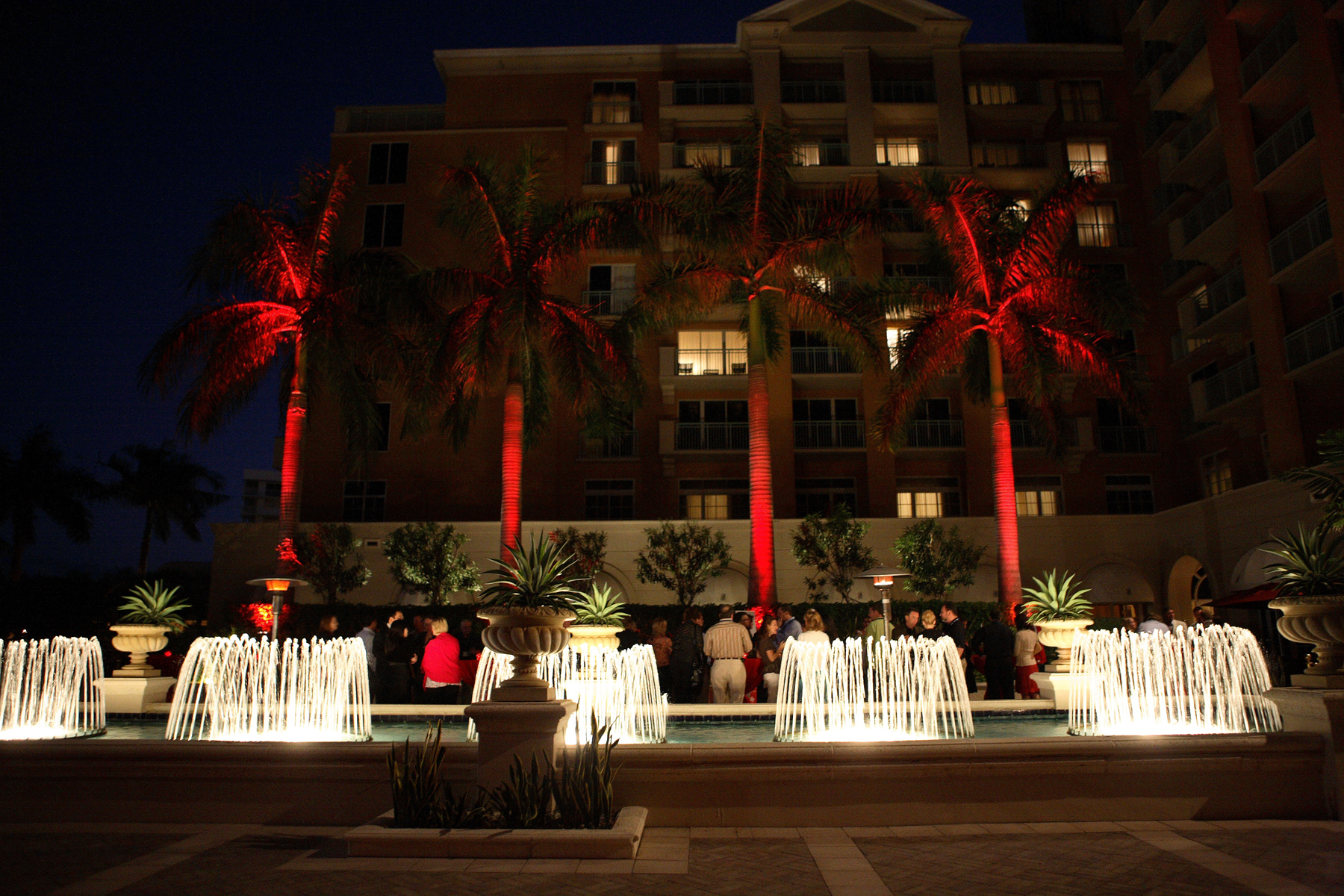 pal trees with red uplights